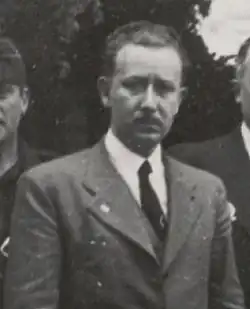 Born on 12 January 1896 in Madrid, Pedro González Bueno y Bocos studied at the Free Institution of Education. He graduated as a civil engineer in roads, canals and ports in 1919.[3] A personal friend of Juan de la Cierva, with whom he was a fellow student at the Escuela Especial de Ingenieros de Caminos, and of José Calvo Sotelo, he was part of the group of personalities who signed the founding manifesto of the Bloque Nacional, a right-wing monarchist coalition during the Second Spanish Republic. On a professional level, González Bueno worked in the management of the Sociedad Ibérica de Construcciones Eléctricas, a company he took over after the assassination in 1936 of its president Luis Sánchez Cuervo.[4]