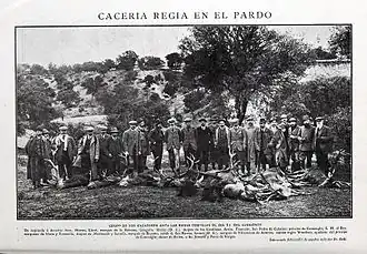 Royal montería with Prince Arthur and Alfonso XIII at El Pardo in 1908. Pidal is the fourth from the right