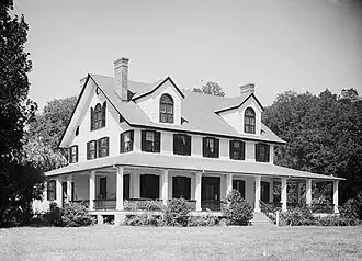 The plantation houses are all frame houses with a central hall plan.[2][3]