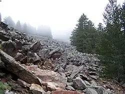Pelister National Park encompasses the northern sections of the Baba mountain massif, at altitudes ranging from 891 to 2601 metres above sea level.[2] It covers 17,150 hectares, constituting about 43.4% of the entire mountain massif.[1] The park features distinct geological formations from multiple geological eras, dominated by Pelister granite and green shales from the Ordovician and Palaeozoic periods. Glacial and periglacial geomorphological formations, unusual for this latitude, include cirques, moraines, granite block streams, and nivation hollows, making it a unique site for geological and geomorphological studies.[2] Baba Mountain is the third-highest mountain range in North Macedonia and covers approximately 436 km². Geologically, the massif belongs to the western Macedonian geotectonic zone and represents the southernmost part of the Rhodope mountain system. Baba Mountain separates two major drainage basins, with rivers flowing towards the Adriatic Sea on one side and towards the Aegean Sea on the other.[3]