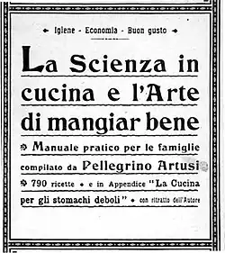 3. ^ "Pellegrino Artusi, the Inventor of Italian Cuisine". La Cucina Italiana. August 30, 2019. Retrieved February 16, 2023.