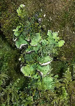 Peltigera leucophlebia is a lichenized fungus in the family Peltigeraceae. It is commonly called ruffled freckled pelt. This and other species in the genus contain a green algae in the genus Coccomyxa and also cyanobacteria in the genus Nostoc as symbionts.[1]