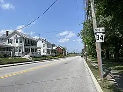 PA 34 begins at an intersection with US 15 Bus. in the borough of Gettysburg in Adams County, with the road continuing south as part of US 15 Bus. toward the downtown area. From here, the route heads north on two-lane undivided Carlisle Street past homes. PA 34 crosses into Cumberland Township and becomes Biglerville Road, passing through fields within Gettysburg National Military Park. After leaving the park boundaries, the road heads through rural areas with residential and commercial development. The route heads into Butler Township and crosses the Gettysburg and Northern Railroad as it passes through a mix of farms and woods with some homes. PA 34 runs through more rural areas with occasional development before crossing into the borough of Biglerville and becoming South Main Street, passing residences and a few businesses as it intersects PA 394. The route continues into the downtown area and comes to a junction with PA 234. Here, the road becomes North Main Street and passes more homes before heading back into Butler Township.[2][3]