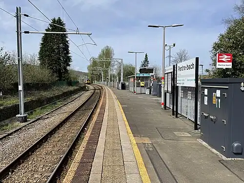 Pentre-bach railway station serves the villages of Pentrebach and Abercanaid in Merthyr Tydfil, Wales. It is located on the Merthyr branch of the Merthyr Line. Passenger services are provided by Transport for Wales.
