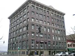 The Perkins Building is a historic building in Tacoma, Washington, United States. The 8-story building housed the offices of the Tacoma Ledger/Daily News. It was the tallest reinforced concrete building in the Northwest and the first building on West Coast to have a basement parking garage.[1] It was constructed with a rigid frame and brick facade in the Chicago School architectural style.[1]