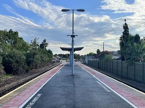 Peterhead railway station is located on the Outer Harbor line.[1] Situated in the north-western Adelaide suburb of Peterhead, it is 14.6 kilometres from Adelaide station.