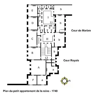 ![]() Plan of the petit appartement de la reine ca. 1740 | |