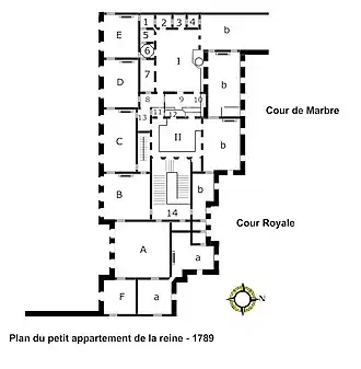 ![]() Plan of the petit appartement de la reine ca. 1789 | |