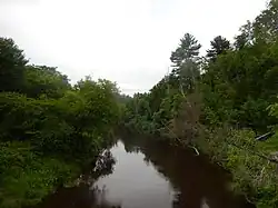 - 5.2 kilometres (3.2 mi) (or 3.2 kilometres (2.0 mi) in a direct line) towards the north, winding up to the confluence of the rivière aux Ormes (coming from the east);