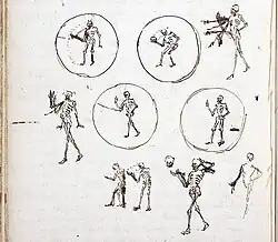 Huygens' 1659 sketches for a projection of Death taking off his head - In 1659 Dutch inventor Christiaan Huygens drew several phases of Death removing his skull from his neck and putting it back again, sketches meant to be projected with "convex lenses and a lamp".[12] This lamp later became known as the magic lantern, and the sketches form the oldest known extant documentation of this invention.