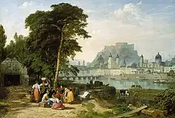 City of Salzburg, The Archbishops Palace on the Rock painted by Philip Hutchins Rogers in 1833