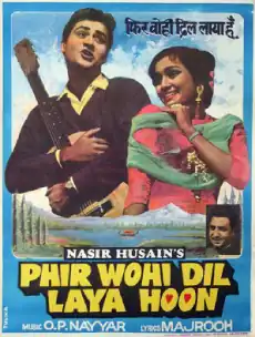 Phir Wohi Dil Laya Hoon (transl. I've brought back the same heart) is a 1963 Indian Hindi-language film. The film became superhit at the box office.[1] This was Nasir Hussain's second production (his first in colour), after the hit film Jab Pyar Kisi Se Hota Hai (1961). He also wrote and directed it. It starred Joy Mukherjee and the Nasir Hussain fixture Asha Parekh. Pran played the villain in the film and Rajindernath had a supporting role. It also contains many songs that Mohammed Rafi sang beautifully.