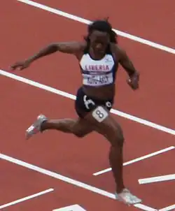 Phobay Kutu-Akoi (born 3 December 1987 in Monrovia, Liberia) is a Liberian athlete who competes in sprinting events.[2] She represented her country in the 100 metres at the 2012 Summer Olympics. She was the flag bearer of Liberia during the opening ceremony.[3] She also competed at the 2011 Outdoor World Championships in Daegu, South Korea and at the 2016 Indoor World Championships in Portland, Oregon.