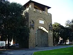 In 1865, the demolition of the medieval walls allowed for a new reshaping of the area by the architect Giuseppe Poggi, completed in 1875 in the present elliptical shape square, surrounded by palaces.[2] In the middle of the tree-lined park is a pool with fountains in front of the triumphal arch.