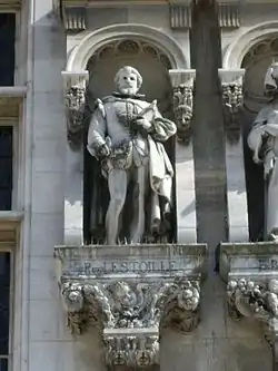 Statue of Pierre de l'Estoile on the façade of the Hôtel de Ville de Paris by Martial Adolphe Thabard, 19th century