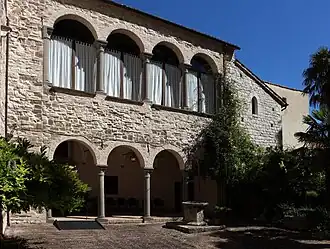 The art gallery and museum was constituted in 1974 to house collections of works from former local churches and monasteries. Among its collections are works by the brothers Lorenzo (Mystical Marriage of St Catherine) and Jacopo Salimbeni, Paolo Veneziano, Allegretto Nuzi (Madonna dell'Umiltà), Lorenzo d'Alessandro (Pietà); Vittore Crivelli (a polyptych depicting the Madonna and Saints), and Pinturicchio (Madonna della Pace); two canvases by Pomarancio; fresco fragments by followers of Giotto; a Martyrdom of St Bartholemew by a 17th-century Lombard painter; a number of wooden engravings in globes; and wooden choir stalls (1513), including ones by the studio of Domenico Indivini.[1]