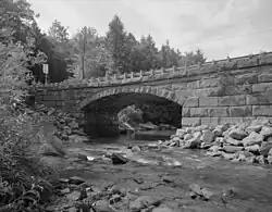 The bridge was owned by both townships until 1935, when the Pennsylvania General Assembly passed an act turning over ownership of bridges on state routes to the predecessor to the Pennsylvania Department of Transportation (PennDOT).[5] One of the wing walls was replaced in 1949. The bridge was listed on the National Register of Historic Places on June 22, 1988 and was documented by the Historic American Engineering Record in the summer of 1997.[2][6]