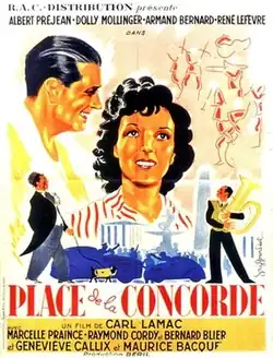 Place de la Concorde is a 1939 French comedy film directed by Karel Lamac and starring Albert Préjean, Dolly Mollinger and Armand Bernard.[1] [2] [3] It takes its title from the Place de la Concorde, a major public square in Paris.