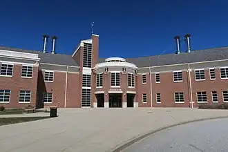In 1915, the curriculum included Latin, English, mathematics, German, bookkeeping, history, biology, physics and commercial geography, taught by a faculty of six, including Principal Chapman.[7] That Fall, Chapman made the case publicly for a new building, citing crowded conditions[8] as the school grew: "The need for a new building for the high school should be brought to the attention of the voters of the town and such action taken as will best serve the interests of all. To delay consideration of this question much longer is to lose ground already gained."[9] By 1924, Plainfield High School moved into a new building, known as the Annex, which served until 2005, when the present building was constructed.[2]