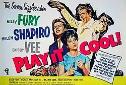 Play It Cool is a 1962 British musical film directed by Michael Winner and starring Billy Fury, Michael Anderson Jr., Helen Shapiro, Bobby Vee, Shane Fenton, Danny Williams, Dennis Price, Richard Wattis, Maurice Kaufmann and Anna Palk.[2]