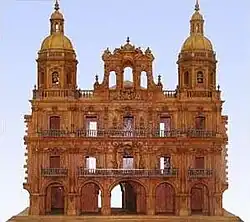 Construction of the plaza began in 1729 and was completed in 1755.[5] Felipe V ordered the construction of the plaza to be used for bullfighting and was designed by the Churriguera family in sandstone. It had been used for bullfighting up until the mid-19th century, one hundred years after being completed.[1][6] The construction took place in two phases: the first was between 1729 and 1735 and the second was between 1750 and 1755. The first phase was built under the direction of Alberto Churriguera while the second phase was built under the direction of Manuel de Larra Churriguera, his nephew.[7] Finally, Andrés Garcia de Quiñones built the City Hall.