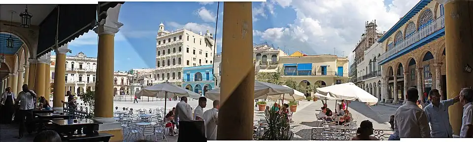 The Plaza Vieja (lit. 'Old Square') is a plaza located in Old Havana, Cuba. The plaza and its surroundings are also one of the seven consejos populares (wards) of the municipality of Old Havana.[1] It has a residential population of 17,426.[1]