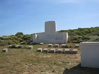 Plugge's Plateau Cemetery is the smallest Commonwealth War Graves Commission cemetery on the Gallipoli Peninsula in Turkey. It contains some of soldiers killed during World War I during the battles at Gallipoli, was an eight-month campaign fought by Commonwealth and French forces against Turkish forces in an attempt to force Turkey out of the war, to relieve the deadlock of the Western Front (France/Belgium) and to open a supply route to Russia through the Dardanelles and the Black Sea.