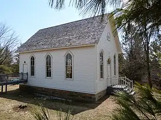 The Plum Grove Primitive Methodist Church is a historic church on County Trunk Highway BB in Ridgeway, Wisconsin. The church was built in 1882 for a newly formed Methodist congregation, an outgrowth of the large Methodist community in Mineral Point. In the 19th century, both Mineral Point and Iowa County as a whole had a large Cornish immigrant population who came to the area to work in its lead and zinc mines; as the immigrants were predominantly Methodist, they build many new Methodist churches for their congregations. The Plum Grove church is a one-story Gothic Revival wood frame structure with board siding, an arched entrance and windows, and a gable roof. The church changed its affiliation to the Congregational Church in 1913, and regular services in the 1882 building stopped around the same time. The Plum Grove community converted the building to a community center in the 1930s and used it for local events until the 1970s.[2]