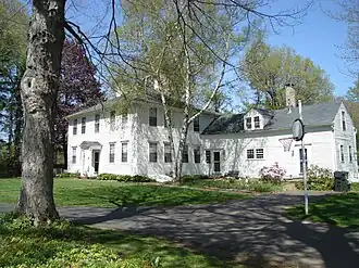 This house faces south from the northeast corner of Westfield and East Streets. Tall shade trees shield the house from the nearby roads. Neighboring structures date from post-World War II development of this formerly rural area.