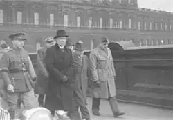 Initially 70 students originating from the military corps and 20 civilians entered medical studies at the PSM.[7] Polish nationals who were matriculated at the Polish School of Medicine (PSM) became full-time University of Edinburgh students and therefore enjoyed the same privileges as regular Edinburgh University students.[2] Their studies, including the fee of £2.50, were funded by the Polish authorities. From the very beginning, thanks to the tireless efforts of the staff members, the courses at the PSM were very highly regarded by the University of Edinburgh authorities. Students attended seminars and lectures within the College of Medicine buildings at Bristo Street and clinical training took place at the Royal Infirmary, Royal Sick Children Hospital and the City Hospital. From October 1941 students were also taught in the Paderewski Hospital, located in the grounds of the Western General Hospital. Under Defence regulation 32B the General Medical Council was able to register doctors who had qualified in countries such as Poland temporarily. In 1941 such doctors could be placed on the Medical Register and in 1947 they were placed on the permanent register under the Medical Practitioners and Pharmacists Act 1947 (11 & 12 Geo. 6. c. 11). As the British authorities recognised the right of Polish professors to work as doctors in the UK during the war, this allowed them to teach the students within Scottish wards. On a day-to-day basis Polish nationals encountered great support from the Scottish community. In December 1941 student accommodation for PSM students opened at Grosvenor Crescent, in the city centre. On 17 July 1941 (only four months after the PSM was established) the first medical degree was awarded to a former Kraków Jagiellonian University medical student, Konrad Bazarnik.[2] On 12 December 1941 further degrees were granted to Wladyslaw Galuszka, Jadwiga Mickiewicz, Ferdynand Solich and Stanislaw Sychta.[2] The Polish School of Medicine students joined the Polish military forces after graduation.