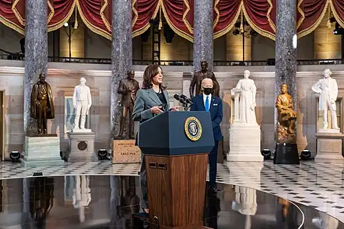 223. ^ Desiderio, Andrew (August 31, 2021). "Harris makes rare recess appearance to help pass Afghanistan evacuee bill". Politico. Retrieved August 22, 2024.