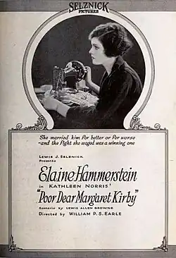 Poor, Dear Margaret Kirby is a 1921 American silent drama film directed by William P.S. Earle and starring Elaine Hammerstein, Helen Lindroth and Warburton Gamble.[1] It was produced by Selznick Pictures and shot at the company's studios in Fort Lee, New Jersey.