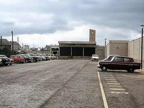 The present station opened in 1970, replacing a large and largely redundant station. At the time (1970) the station was called Portadown - Craigavon West, a title that was quietly dropped after the "new city" Craigavon failed to materialise. The layout of the 1970 station was modified in 1997 to allow bi-directional working on all three platforms. The lines to Cavan via Armagh (closed 1957), and Derry via Dungannon and Omagh (closed 1965) diverged immediately west of the present station.[11]