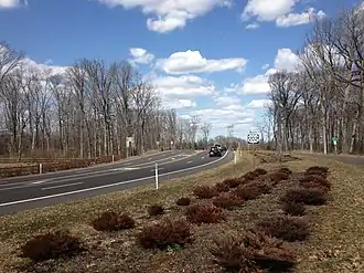Hairpin curve on U.S. Route 44 and New York State Route 55 near Gardiner, New York.