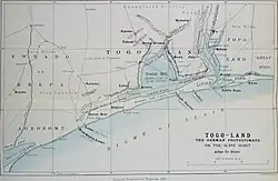 A 1885 map showing Petit-Popo and Porto Seguro along the Togolese coast