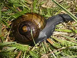 | Powelliphanta hochstetteri subsp. obscura seen in the Marlborough District, New Zealand | |