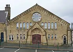 The building was designed by Richard Coad as the headquarters of the 4th West Yorkshire Rifle Volunteer Corps and was built between 1868 and 1870.[1] This unit evolved to become the 1st Volunteer Battalion, The Duke of Wellington's Regiment in 1883 and the 4th Battalion, The Duke of Wellington's Regiment in 1908.[2] The battalion was mobilised at the drill hall in August 1914 before being deployed to the Western Front.[3]