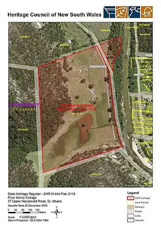 - ^ a b c d e f g h i j k l m n o p q r "Price Morris Cottage". New South Wales State Heritage Register. Department of Planning & Environment. H01444. Retrieved 2 June 2018.