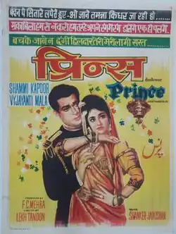 Prince is a 1969 Indian Hindi-language film produced by F. C. Mehra and directed by Lekh Tandon. The film stars Shammi Kapoor with Vyjayanthimala in the lead while Rajendranath, Ajit, Helen, Leela Chitnis and Asit Sen form an ensemble cast. The film's music was composed by Shankar Jaikishan with lyrics by Hasrat Jaipuri and Faruk Qaiser. Prince is a drama set in the times of resurgent India when the nation threw off the British yoke, but some states still languished under the Princely yoke. It is the story of a Prince who brought about his own downfall so that he may rise as a human being. Vyjayanthimala got married in 1968 and then completed this film in 1969.