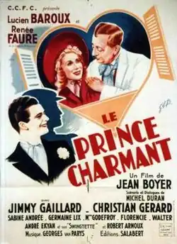 Prince Charming (French: Le prince charmant) is a 1942 French comedy film directed by Jean Boyer and starring Lucien Baroux, Renée Faure and Jimmy Gaillard.[1] It was shot at the Saint-Maurice Studios in Paris which was then under German Occupation. The film's sets were designed by the art director Jacques Colombier.