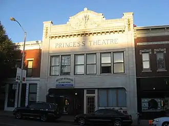 Princess Theatre, also known as the Princess Theatre Building, is a historic theatre building located at Bloomington, Monroe County, Indiana. It was built in 1892, and converted and enlarged for use as a theater in 1913. It was subsequently refurbished to its present appearance in 1923. It is a two-story, rectangular, brick building with a glazed terra cotta front. The front facade features full-height pilasters and an arched opening with decorative brackets. The theater portion of the building was removed in 1985.[2]: 2–3