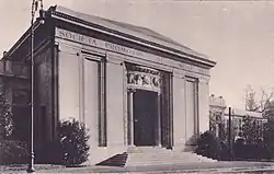 The gallery moved to the exhibition pavilion in Via Crivelli, located in Parco del Valentino in 1914.[2] Land adjacent to the Castello del Valentino was purchased and in 1919 a building was built for the exhibits. Designed by Enrico Bonicelli, the building included sculptures by Davide Calandra with exeterior work by Giulio Casanova and Edoardo Rubino. The building was englarged by Giovanni Chevalley during the 1930s and 1940s, including the addition of pavilions.[1]