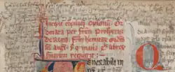 Prosper's notebook survives in the Vatican Library, where it has been bound together with his extensive but incomplete commentary on the Sentences as Vat. lat. 1086. Marginal notes were added later in the 14th century.[4] A citation of his commentary is also found in Thomas of Strasbourg's commentary.[5] His notebook contains reports (reportationes) of various quodlibeta, including his own.[6]