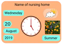 The aim of cognition-oriented treatments, which include reality orientation and cognitive retraining is the restoration of cognitive deficits. Reality orientation consists in the presentation of information about time, place or person in order to ease the understanding of the person about its surroundings and his place in them, for example using an orientation board. On the other hand, cognitive retraining tries to improve impaired capacities by exercitation of mental abilities. Both have shown some efficacy improving cognitive capacities,[19][20] although in some works these effects were transient and negative effects, such as frustration, have also been reported.[10] Most of the programs inside this approach are fully or partially computerized and others are fully paper-based, such as the cognitive retention therapy method.[21][22]
