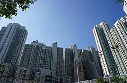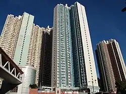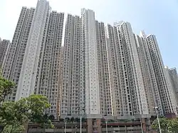 Yau Lai Estate (Chinese: 油麗邨) is a public housing estate located near Eastern Harbour Crossing and Yau Tong MTR station.[13] The estate was developed in four phases. Formerly an HOS estate, Phase 1 consists of six residential blocks completed in 2005.[18] Phase 3 consists of 2 blocks completed in 2008.[19] Phase 4 consists of 3 blocks completed in 2009.[20][21] Phase 5 and 6 consist of 2 blocks completed in 2011. Phase 7 consist of 2 blocks completed in 2019.