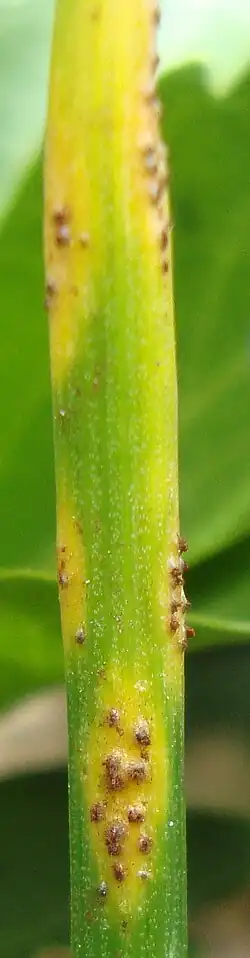 3. ^ Abbasi, M.; Klimek, J. F.; Aime, M. C. Aime (2016). "First report of rust disease caused by Puccinia liliacearum on Ornithogalum umbellatum from Indiana and Maryland with notes on the spread of the rust fungus in the United States". Plant Disease. 100 (10): 2169. doi:10.1094/PDIS-04-16-0509-PDN.