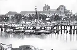 While the Puente Grande was being assessed and repaired, a temporary pontoon bridge called Puente de Barcas (Bridge of Boats) was constructed one block below at Calle Rosario.[2] In the middle of the bridge, the spans were supported by cascos, or large flat-bottomed boats common in the area.[1]