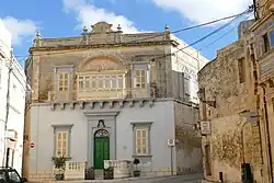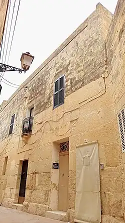 In his 1882 Report on the Phœnician and Roman Antiquities in the group of the islands of Malta, Antonio Annetto Caruana referred to the building as "an old Greek house." By that time, the remains had been incorporated into the house of the parish priest of Żurrieq, and the tower was "in complete preservation" while the adjacent walls' cornice which had been depicted by Houël no longer existed.[12] Today the remains of the building still survive within the priest's residence (known as the Domus Curialis) and in adjacent properties at nos. 134–138, Carmel Street (Maltese: Triq il-Karmnu),[13] with the tower being located within the archpriest's private garden.[6]