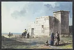 The Punic building with tower as painted by Jean-Pierre Houël around 1770s