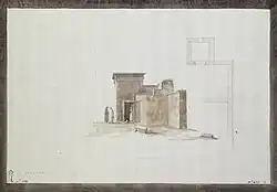 The building's existence was first recorded by Bishop Miguel Jerónimo de Molina in 1680.[10] Believing that the ruins were of Greek origin, Jean-Pierre Houël visited the site around the 1770s and produced paintings and plans of it which were included in his 1785 work Voyage Pittoresque de Sicile, Malte et Lipari.[6][11] Houël's illustrations document the ruins while they were freestanding, prior to their incorporation into later buildings.[3]